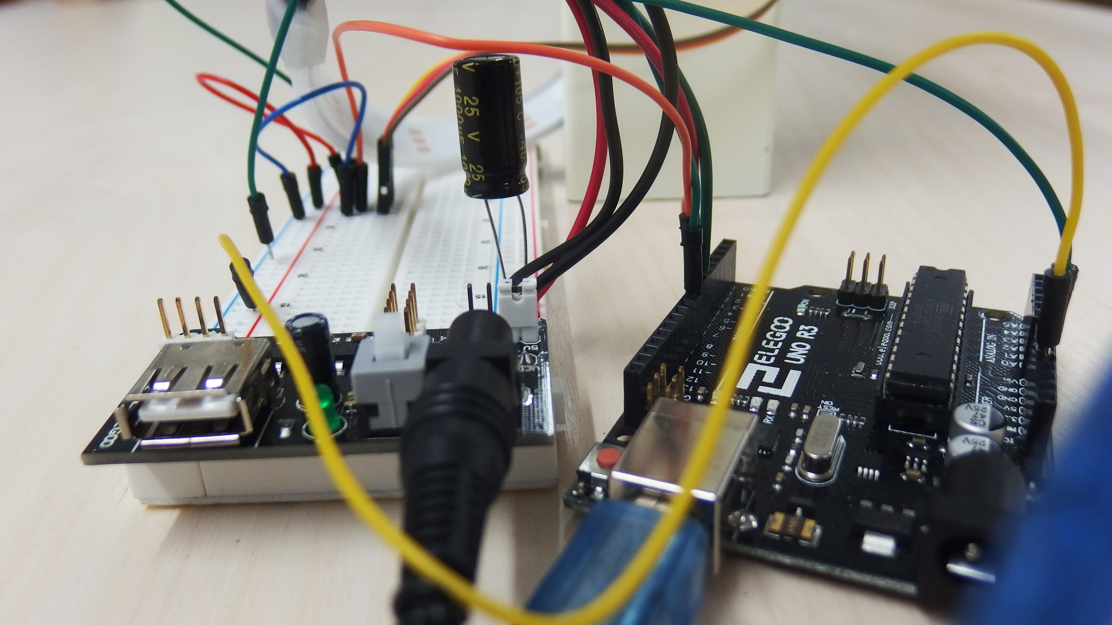 This prototype senses the body and object’s proximity by using ultrasonic sound waves. Then it responds with various lighting density base on the distance. It gets brighter when the body is closer, it fades out when the body is far away. An ultrasonic sensor uses a transducer to send and receive ultrasonic pulses that relay back information about an object’s proximity. This created the fade in and out effect for the lighting. Then I experimented with the lighting colours, at the 50cm distance, it started out by low density with a cool tone, once it reached its halfway it gradually brightened up and turned into a warm tone.